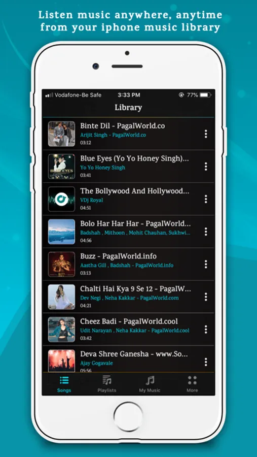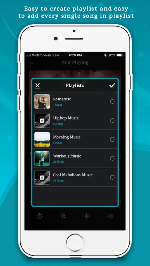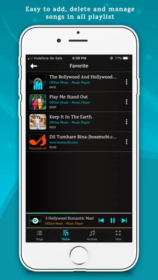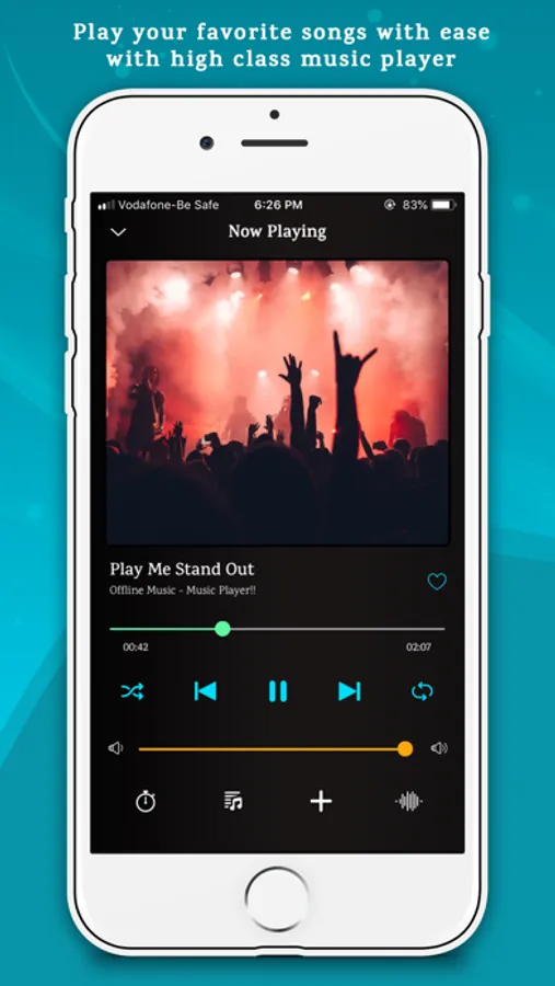 This app also support to create playlist to manage your favorite music and also support high performance music player with repeat, shuffle, add song in favorite list, add song in other playlists and auto off features.