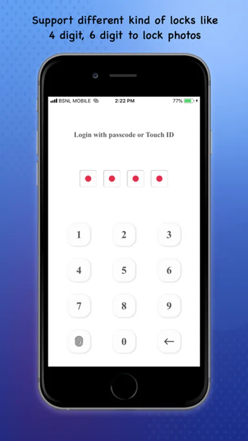 This app supports different types of locks like 4 digit lock, 6 digit lock, pattern lock, voice lock and Touch ID/Face ID.