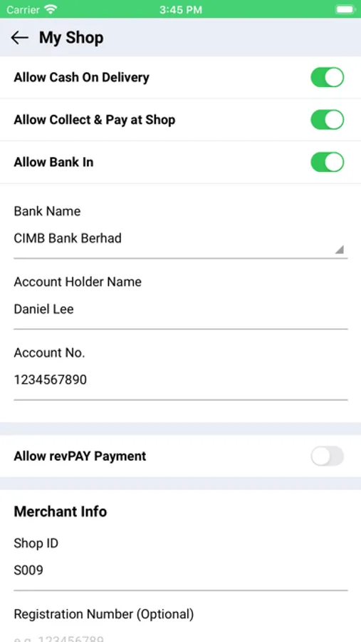- Support payment which includes manual bank in method, cash on delivery and online banking.