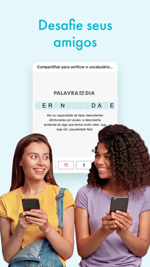 - Mostre como eloqüente você é, desafiando seus amigos a adivinhar o significado ou simplesmente compartilhe as palavras com o mundo.