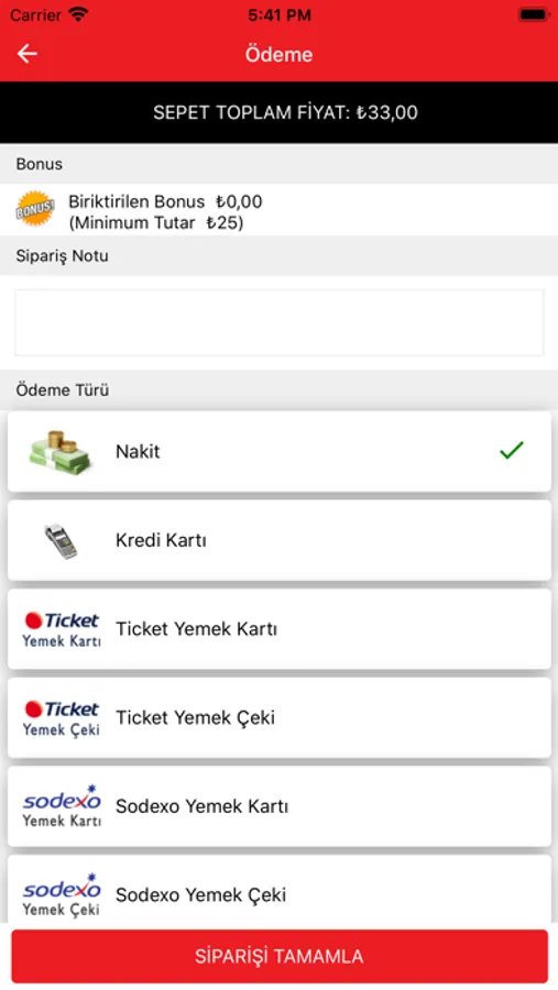 * Geçmiş siparişleri görüntüleme/tekrarlama