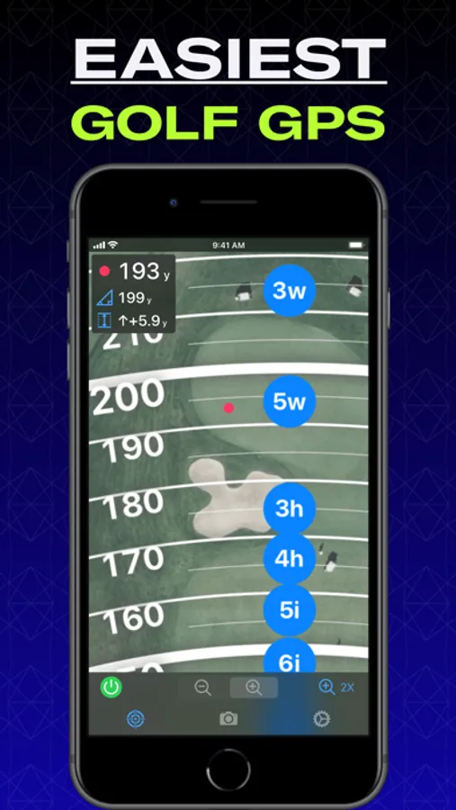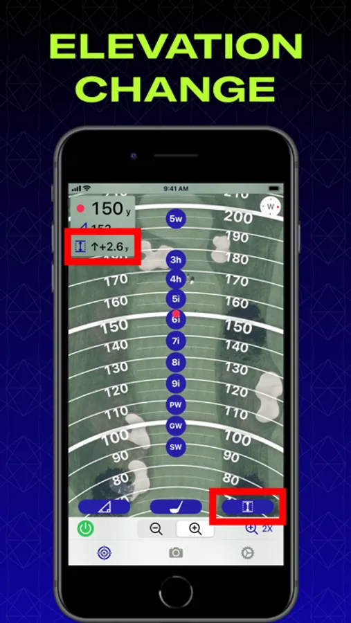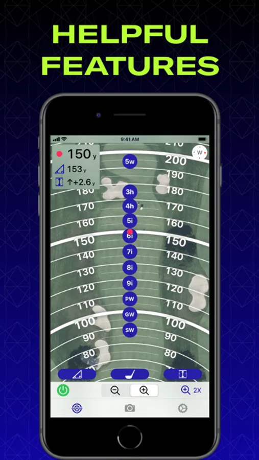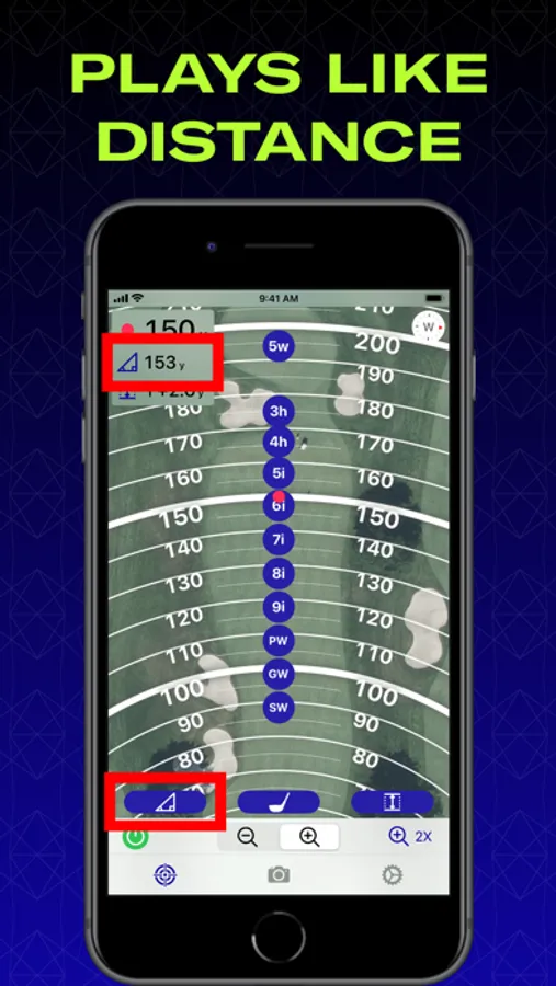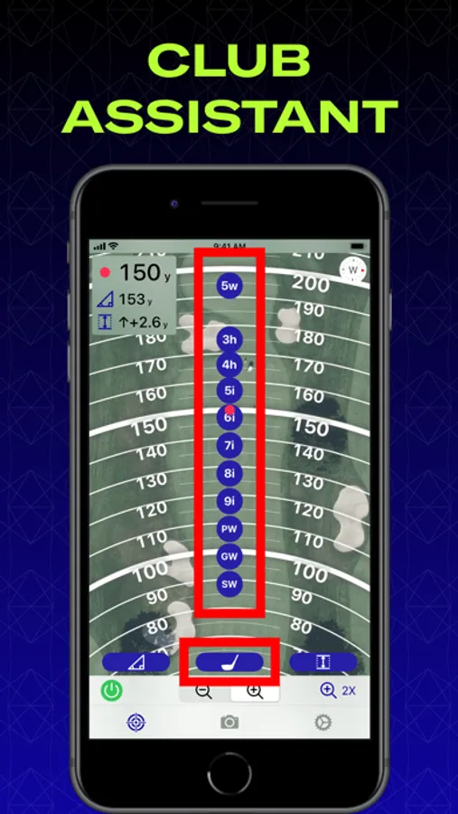 Set how far you hit each club in your bag. Every time you zoom in Club Assistant shows you where you should expect the ball to end up for each club (based on the PLAYS LIKE Distance).