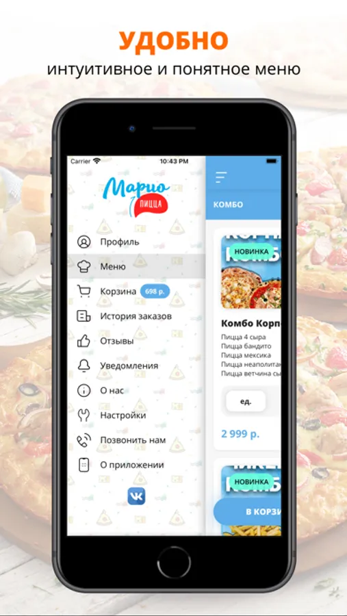 Воспользуйтесь удобным приложением для заказа еды из пиццерии «МАРИО».