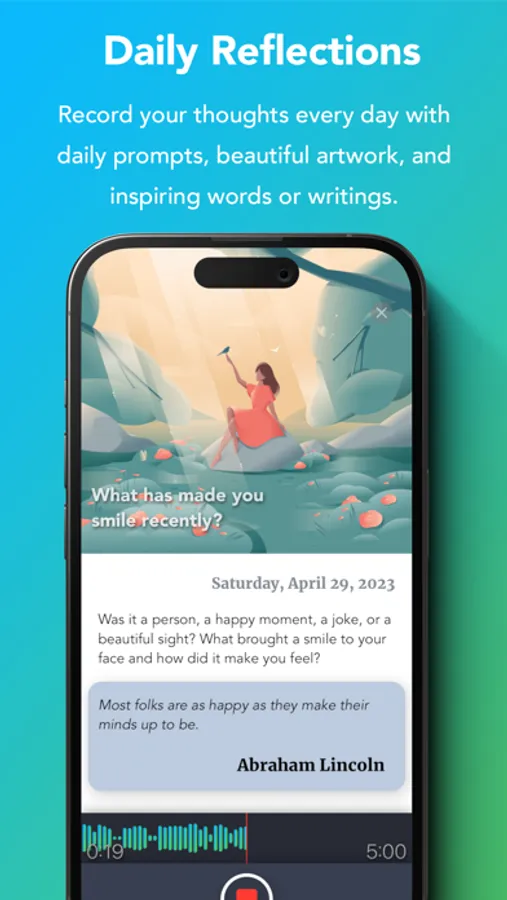 Want to practice daily reflection and thoughtfulness? Perfect -- Sonolog helps you with that, too! Every day, a new DAILY REFLECTION is available to help you talk about your thoughts, feelings, or actions, like a journal prompt. And each Daily Reflection is presented along with beautiful artwork and inspiring poems, quotes, or passages to help stir your thoughts.