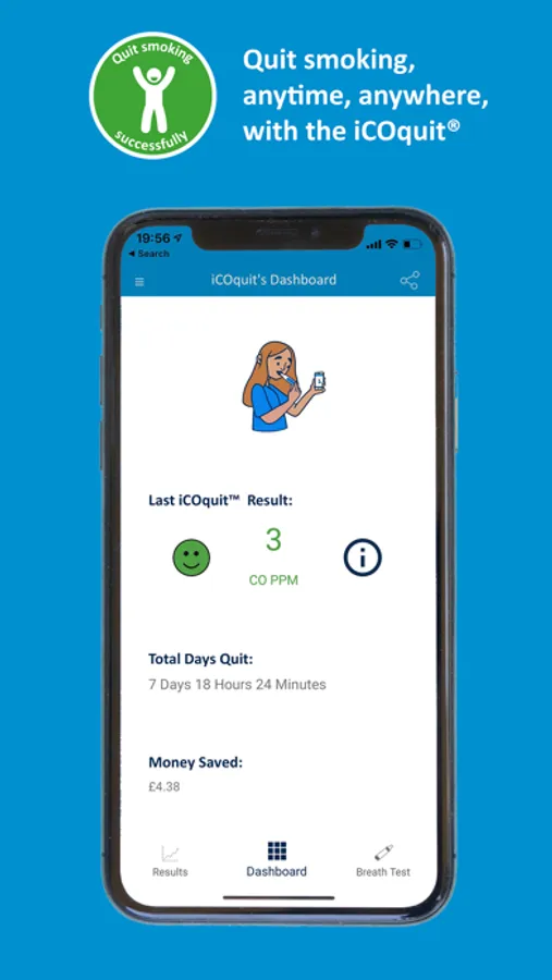 Whether you are attempting to quit smoking for good, simply cut back or motivate a loved one, monitoring CO levels with the iCOquit® app will help you accurately track and manage your smoking throughout the quitting process so that you can set and achieve attainable goals. You’ll use it very much like you would use a set of scales if you were trying to lose weight. The less you smoke, the lower your reading, the healthier you are!