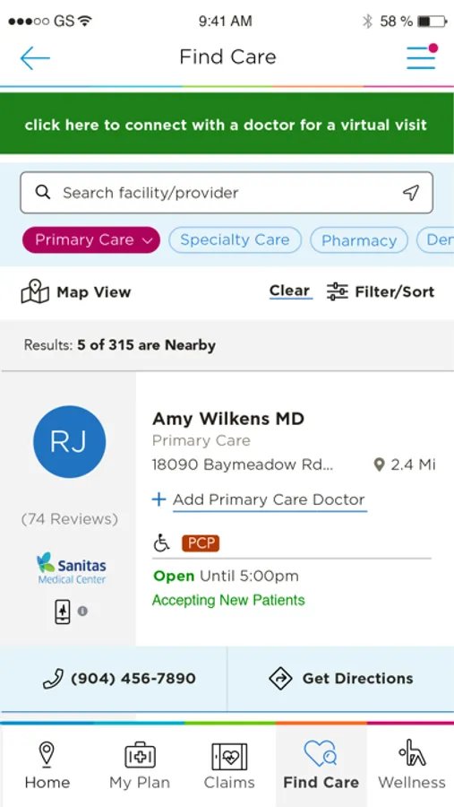 • Find a doctor, urgent care or ER close to where you are—fast.