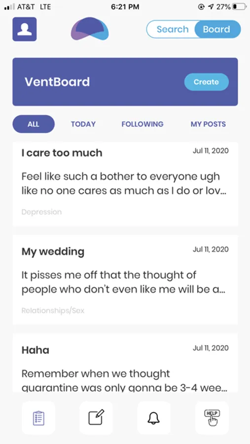 We all get overwhelmed sometimes. Sharing about your problems, challenges, and frustrations can help you feel calmer and think more clearly about solutions. VentSpace is available 24/7 so you can express whenever you want, as often as you like. Anonymously share what you’re feeling through text or audio posts. Or reveal your identity with a video vent.