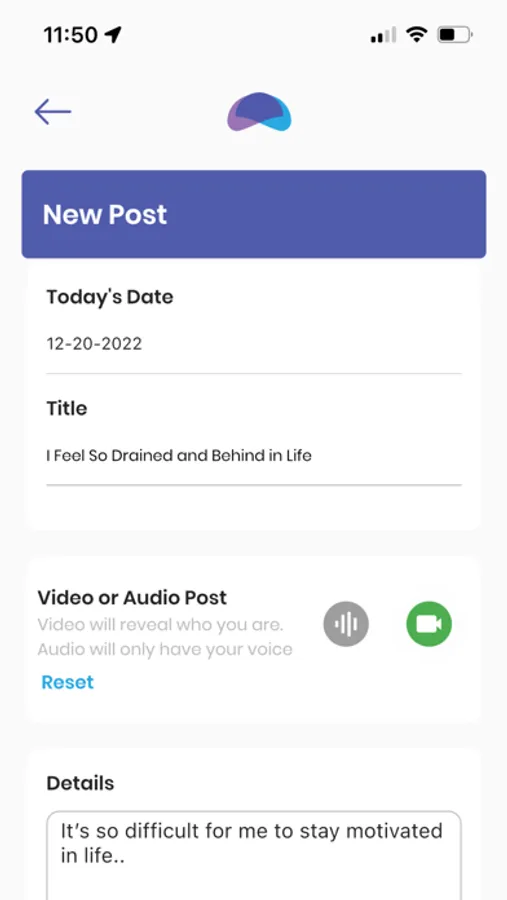 - Select Mental Health Types that relate to your post such as: Depression, Anxiety, Loneliness, Relationships, and more