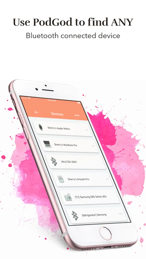 Need to find other Bluetooth devices? No problem. PodGod will help you find any Bluetooth device connected to your phone.