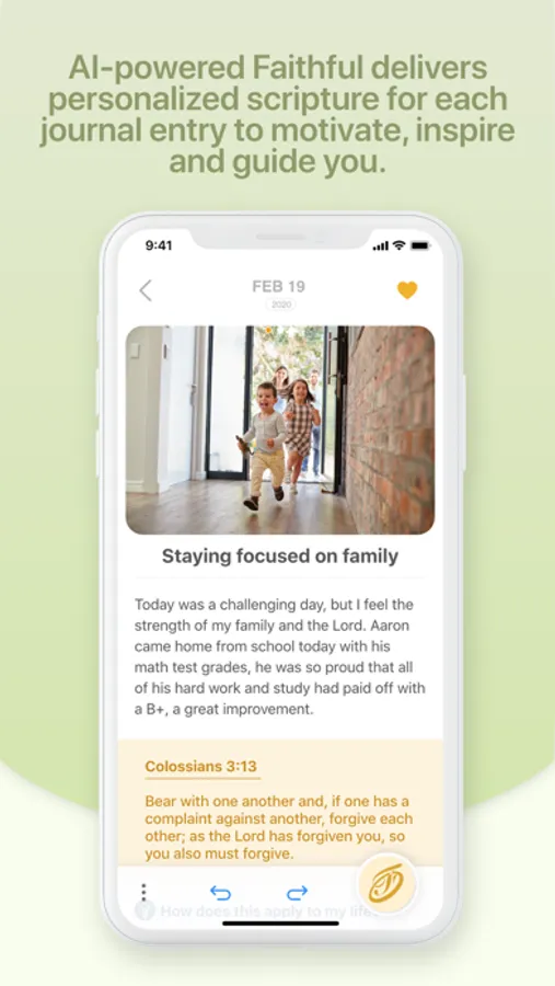 Faithful is a cutting edge journal app that guides users with curated inspirational scriptures matched by AI.