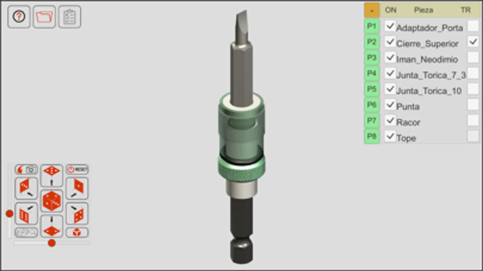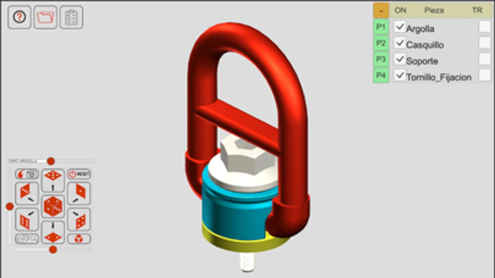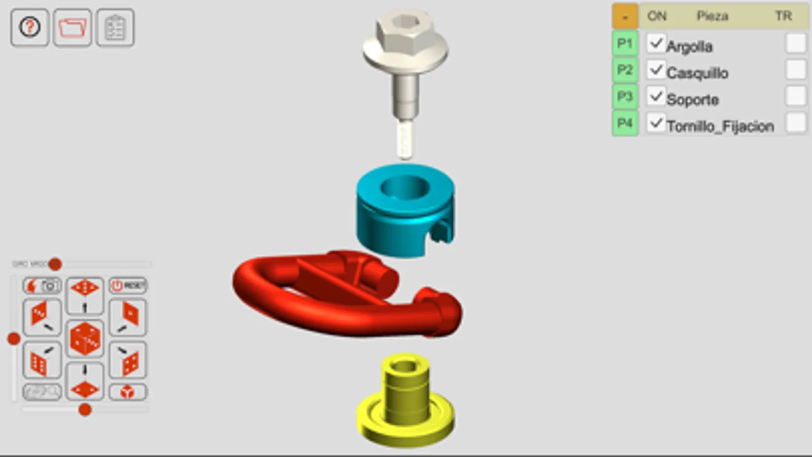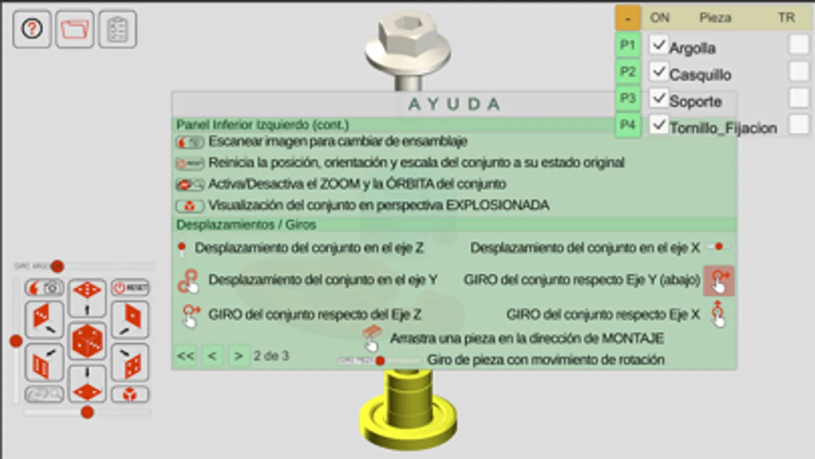 También es posible interactuar con las diferentes piezas arrastrándolas en su dirección de montaje o giro respecto de las demás.