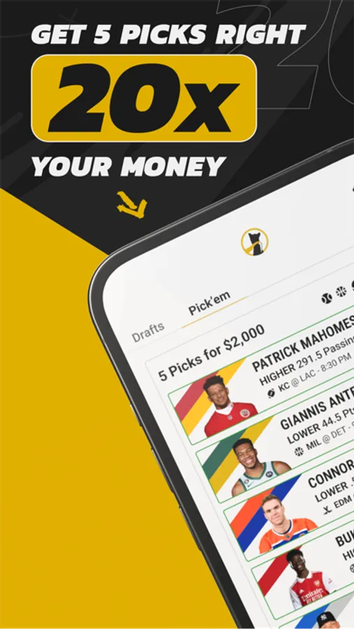 Think you know your sports? Pick’em lets you choose 2-5 of your favorite players and decide whether they’ll go higher or lower. Hit all 5 selections to 20x your money! Mix and match your slip with 15 different sports and well over 25 different leagues, with offerings constantly expanding all the time. The options are endless.