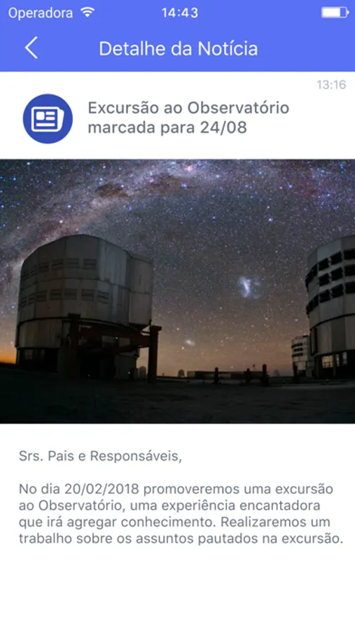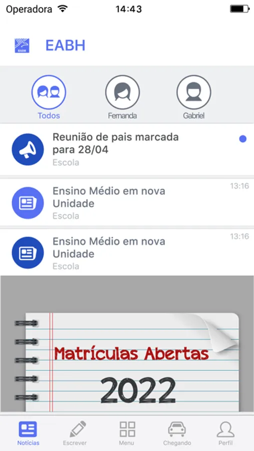 Com este aplicativo, os pais, responsáveis e professores poderão receber as últimas informações da escola, as notícias do dia a dia do seus filhos e o calendário de atividades escolares.