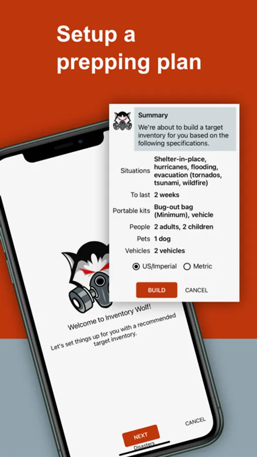 • Complete a simple questionnaire to quickly setup a prepping plan