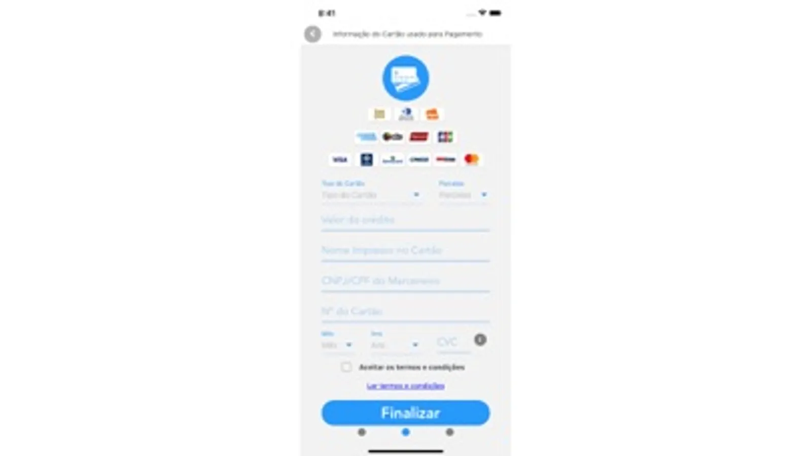 • Passar cartão: pague um adiantamento a empresa para a realização de serviços pelo