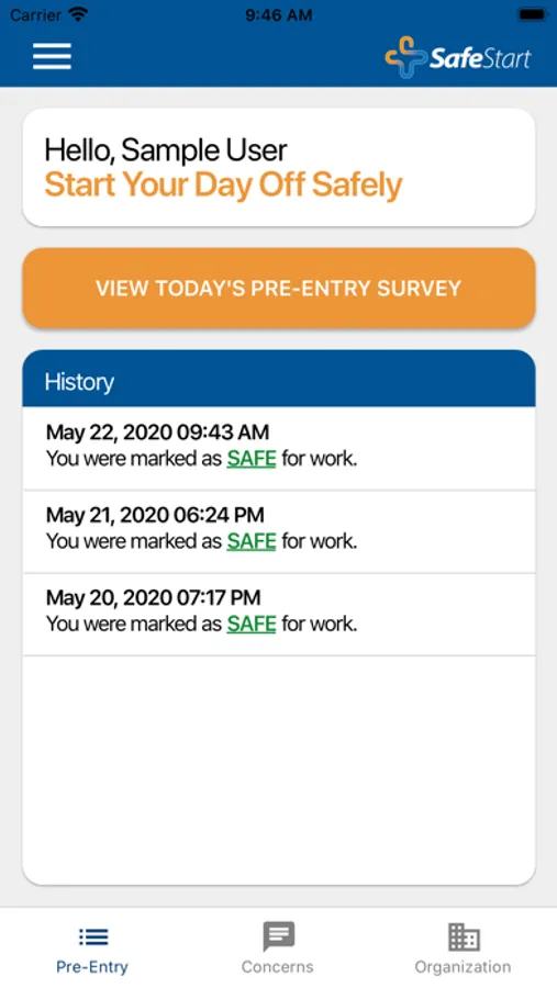 SafeStart works with the individual employees to tailor the technology to reinforce and support their human resource teams as they develop new pre-entry safety related protocols. The Pre-Entry Health Profile data is securely stored and anonymized on the admin portal and the user is able to review their own past entries.