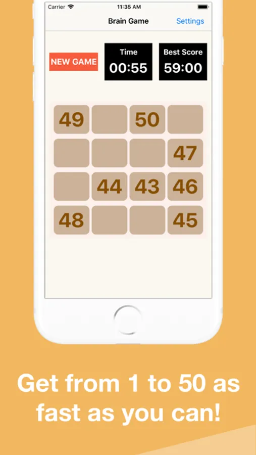 Brain Game: 1 to 50 is a fun game where where you tap the numbers 1 to 50 as fast as you can!