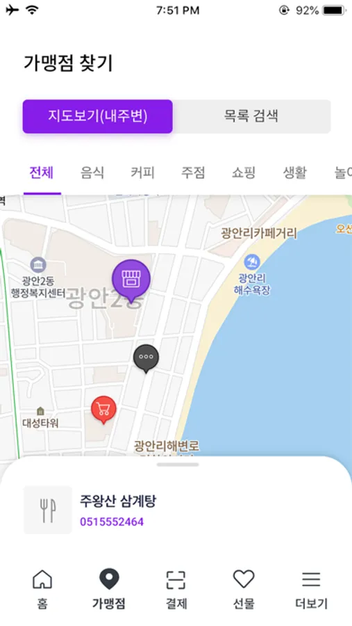 - [선택]위치정보 : 사용자 주변 가맹점 목록을 제공하는 기능에 사용됩니다.