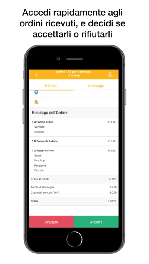 Tramite l'APP potrai gestire gli orari di apertura e chiusura del tuo negozio, gestire il menù e le scorte, controllare gli ordini e comunicare tramite la chat con clienti e riders. Tutto a portata di mano.