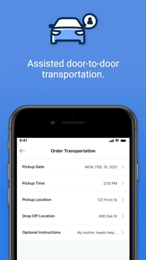 Scheduled door-to-door transportation. Assistance is available to give you peace of mind for trips for you and your loved ones.