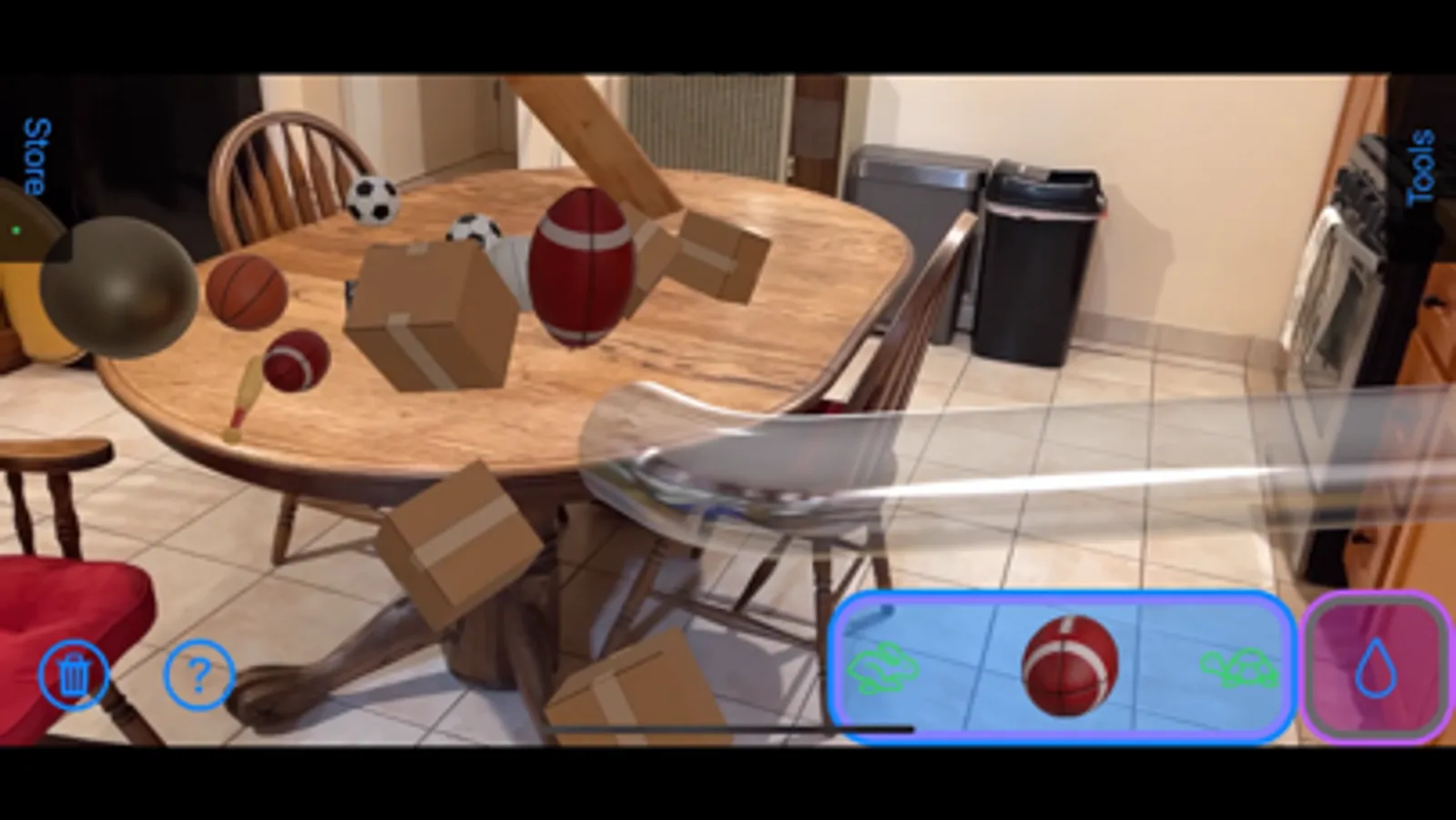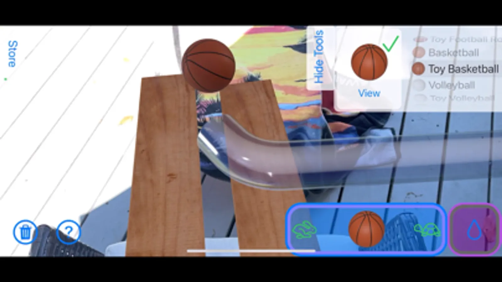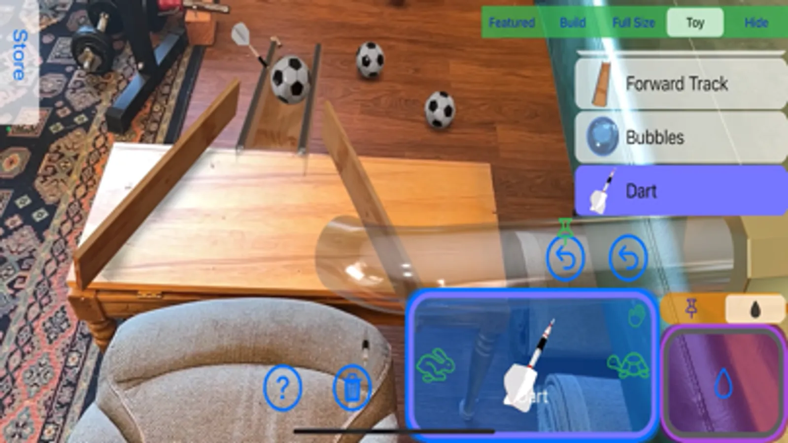 Toss balls, boxes and bubbles into your space - they bounce, flow, rock and roll as if they're real. Tack tracks and planks into your walls, stairs and furniture and roll balls down your new course. Stack boxes, fill crates and knock them over. Toss Darts and they stick the landing. Shoot Baskets and score. Create a wild contraption made of all of these and see it work!