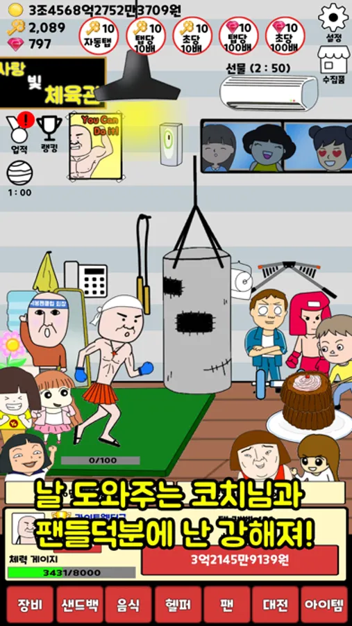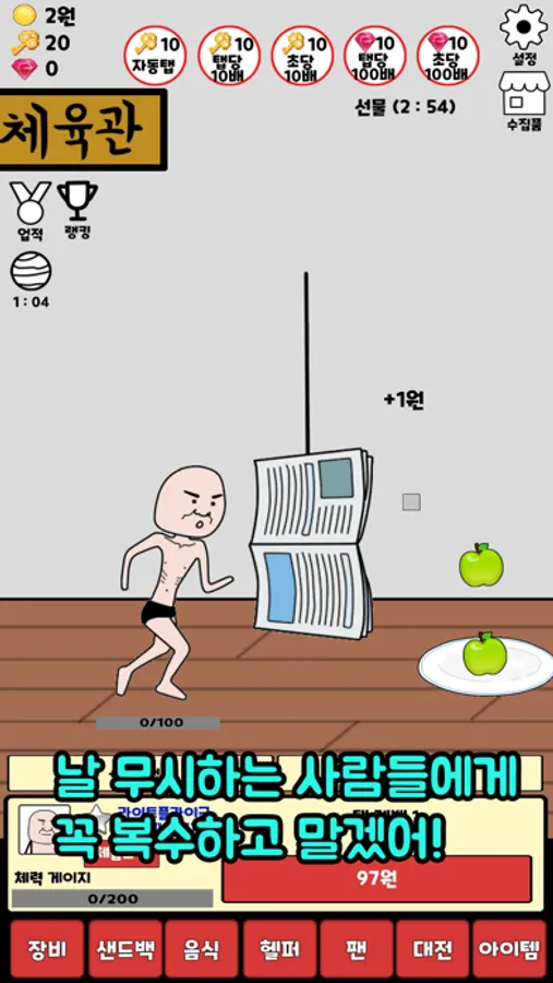레벨이 증가하면 탭당 골드를 올릴수 있어요