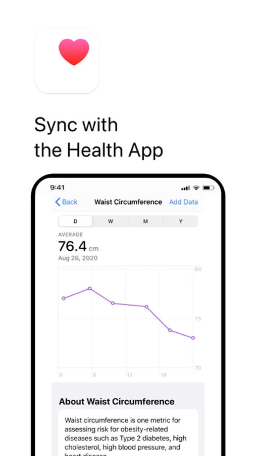 To enable, tap “Sync with Health App” in Settings. Your body fat percentage, waist circumference, and weight will be synced to the Health app.