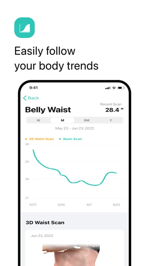 All iOS devices with FaceID can now be used to perform a detailed 3D waist scan. Generate a full 3D model of your waist and get a hyper-accurate waist measurement to more carefully track this key body indicator.