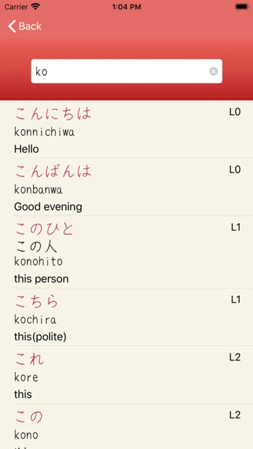 Easy to search words for beginners. You can search words from Kanji, Kana, Romaji, or Translation.