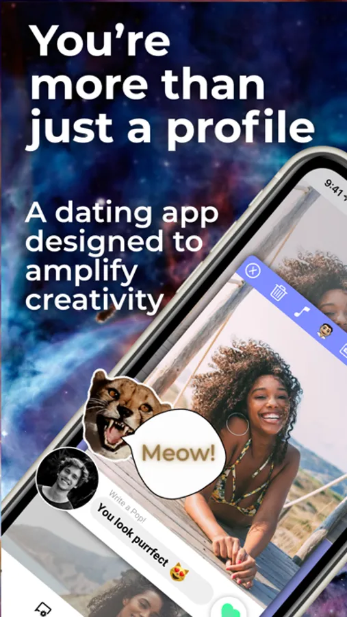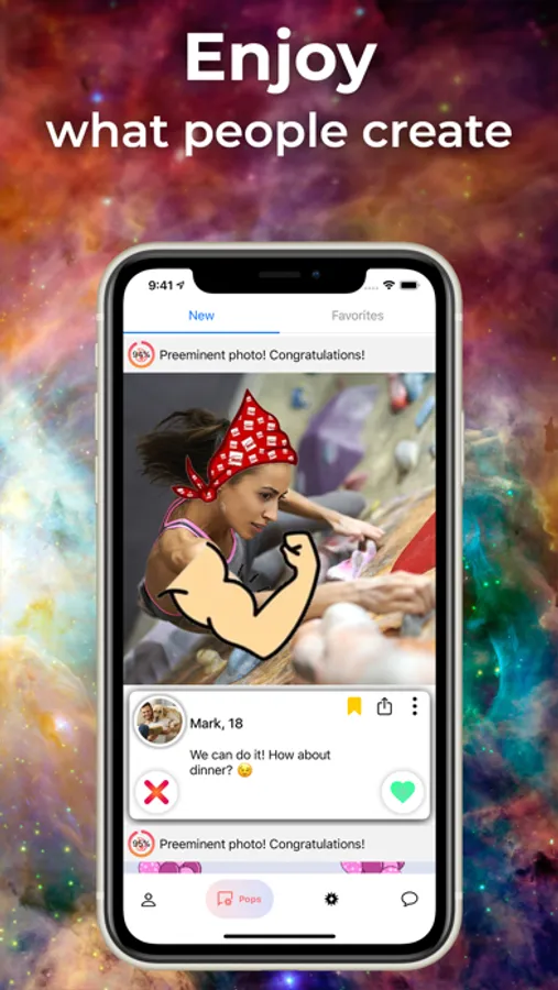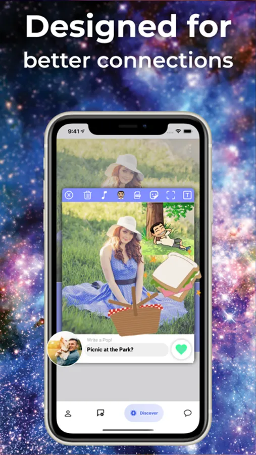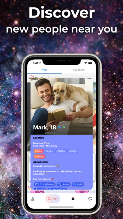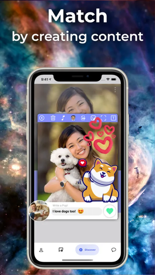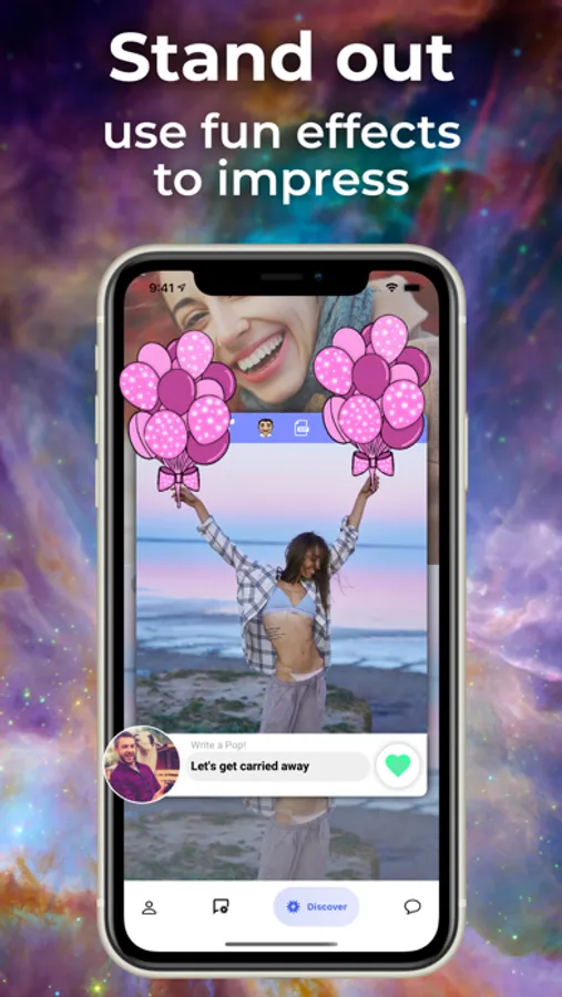 ② Find new people on the Discover Page. Show them you are interested by creating a Pop! You only have one chance to make an impression before matching, so make it count!