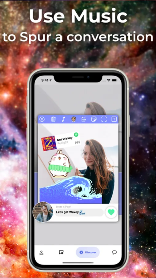 Pops are powered by Spotify, share your favorite tracks and create EPIC memes