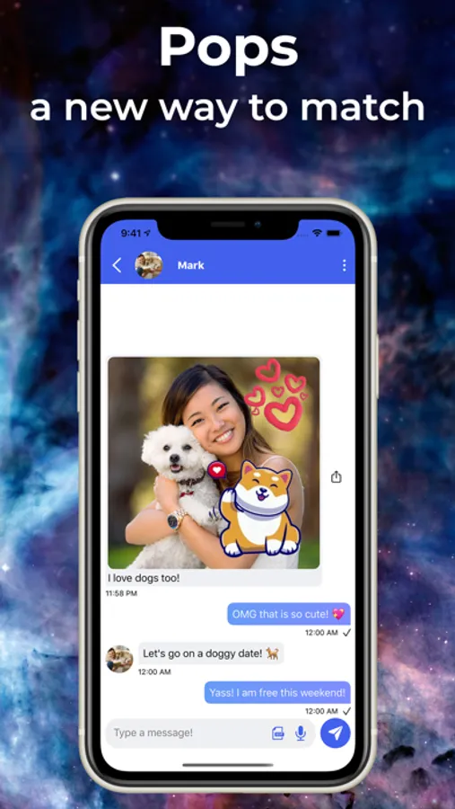 Matched users can send text and audio messages, GIFs, Bitmojis, and Pops!