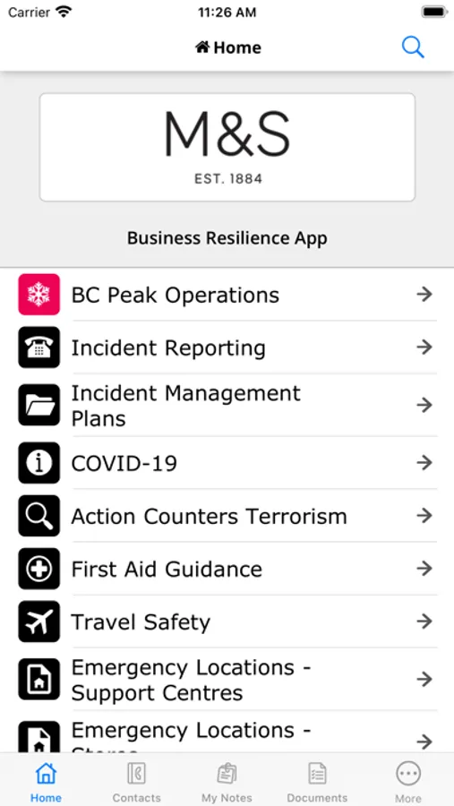 · Access to urgent messaging, when issued by the M&S business resilience team.