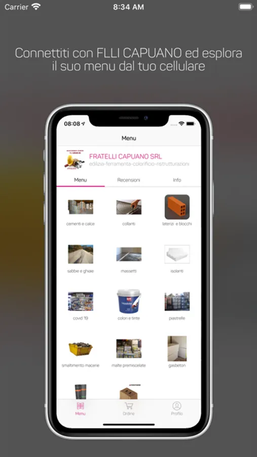 Fratelli Capuano srl : proponiamo la nostra app per dare un servizio nuovo e moderno ai nostri clienti, in modo che possano consultare il nostro listino base, vedere le promozioni essere sempre aggiornati, ordinare, prenotare e ritirare in sede o avere una consegna programmata, in alternativa richiedere preventivo personalizzato