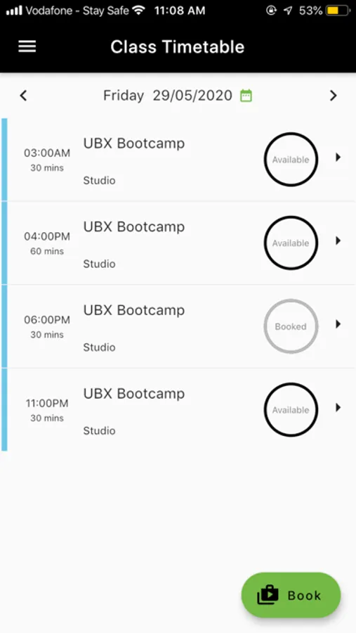 Receive push notifications from UBX Training to remind you of upcoming bookings and special events. View a full history of these notifications in app so you you’re always in the know.