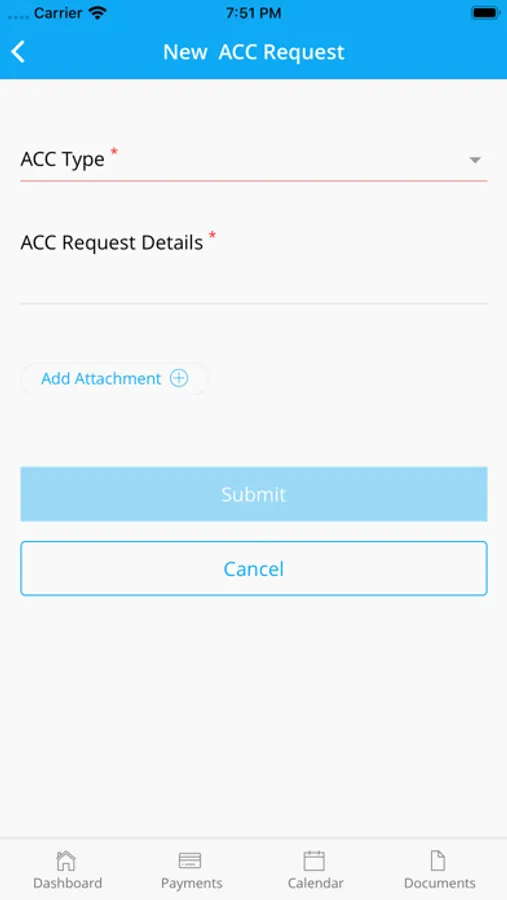 i. Submit ACC Requests and include pictures and attachments (pictures can be taken from mobile device)