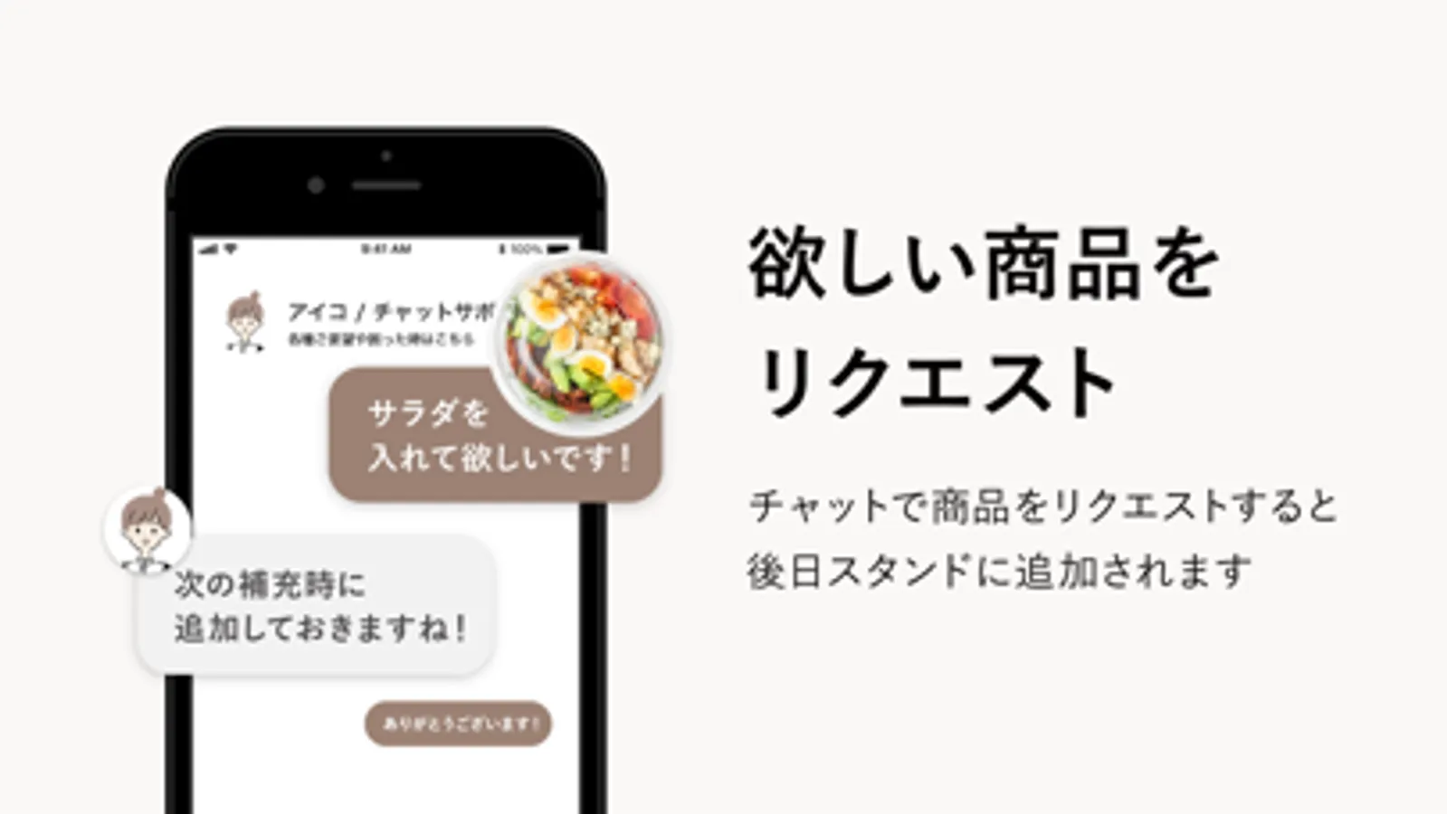 アプリから欲しい商品をリクエストすることで、自分好みのコンビニにすることが可能です。