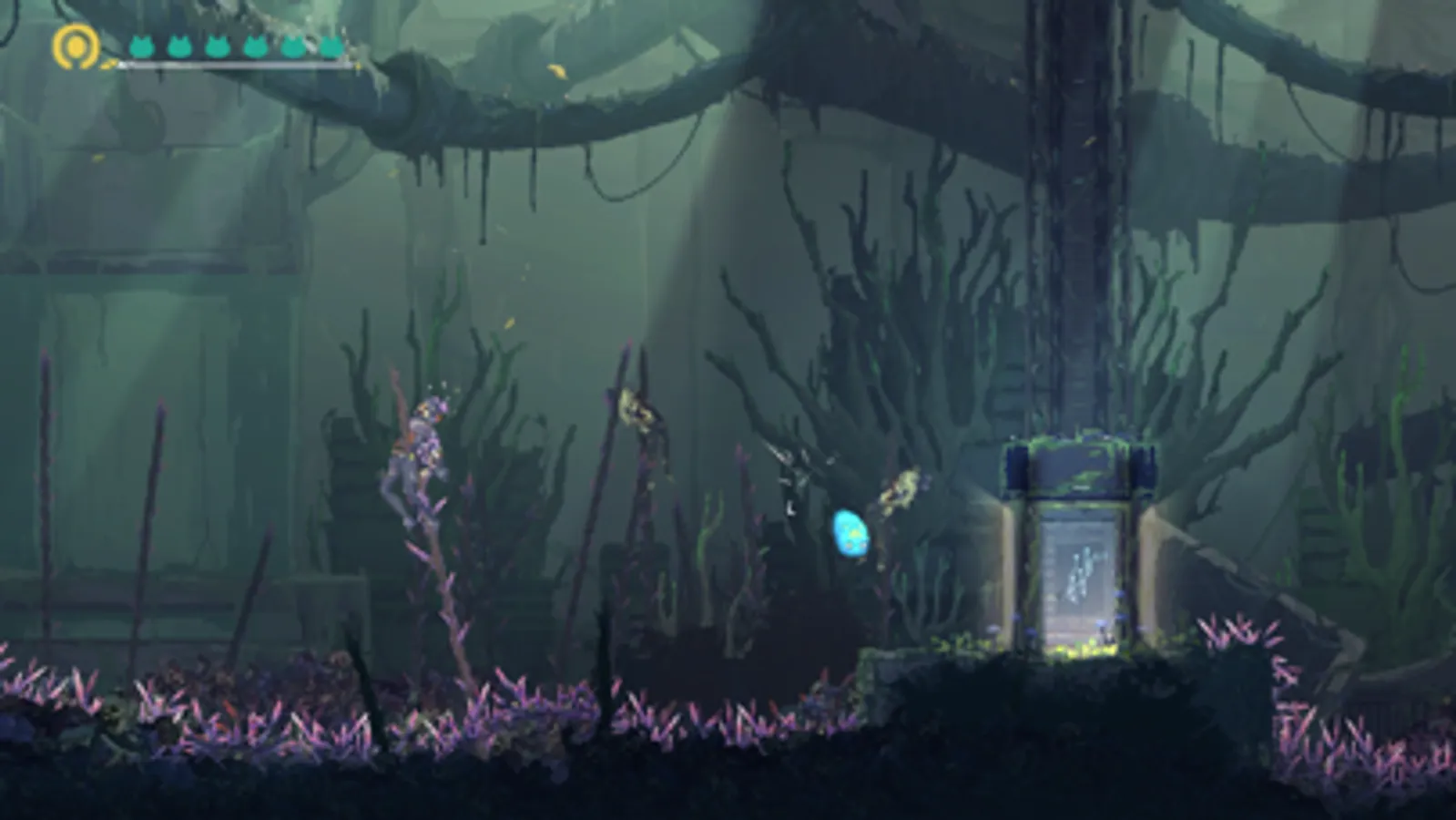 MO has an exquisite pixel art that is both adorable yet dark, giving the game a full-bodied sci-fi atmosphere. Besides fitting the storyline perfectly, the amazing aesthetic effects are a constant visual feast for players as they adventure onward.