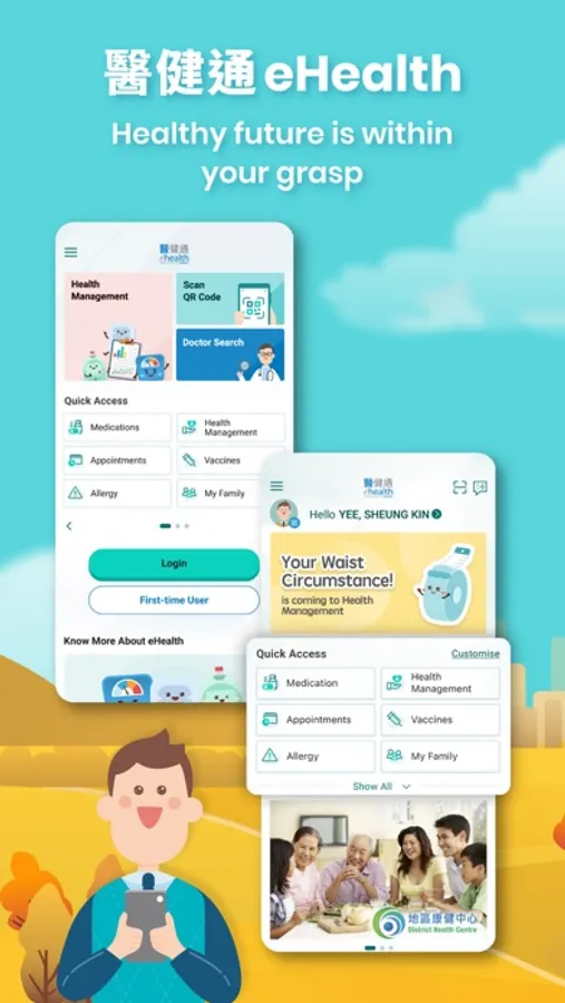 The 醫健通eHealth App is developed by the Electronic Health Record Office of the Health Bureau. It provides you with one-stop access to useful health information and the electronic health record (eHR). With the醫健通eHealth App, you can take charge of your own and your loved ones’ health anytime, anywhere.