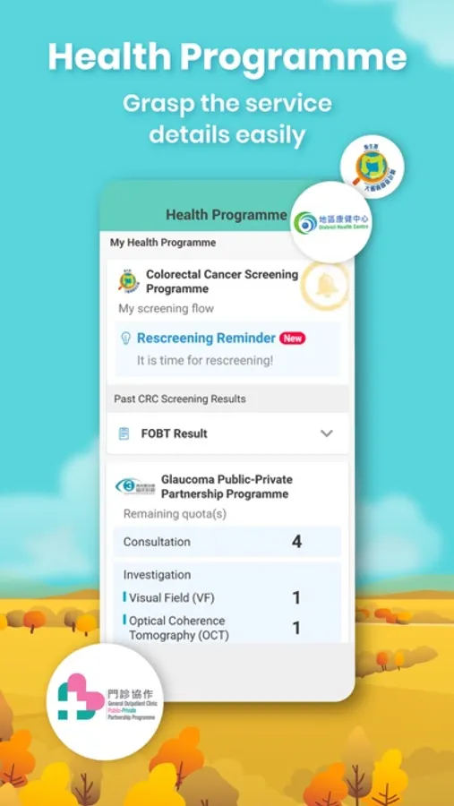 The 醫健通eHealth App provides you with public health information and government health programmes’ information.
