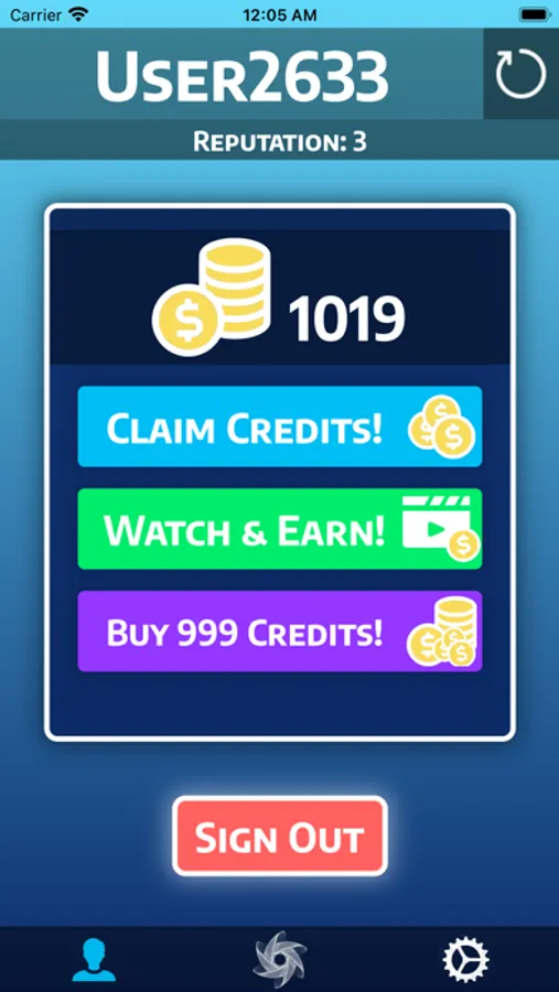 You can view your reputation and how many credits you have from the Profile Tab.