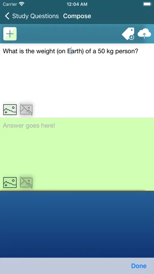 Creating your own practice question post is simple! Simply press the compose button within the section that you want to upload a post in. Type or paste in the questions and answers into their corresponding boxes. Add any images if necessary from your camera or photo library. That's it! Once you have uploaded it, it will be visible to all MetaStudy users to practice from!
