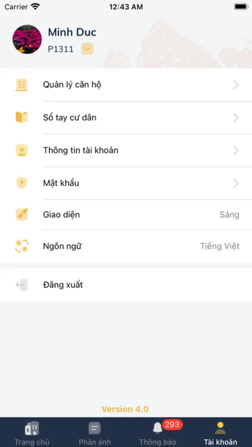 Khi sử dụng tài khoản, cư dân có thể gửi trực tiếp các phản ánh của mình về cho Ban quản lý tòa nhà để xử lý các vấn đề phản ánh và xác nhận phản ánh. Bênh cạnh đó cư dân có thể dễ dàng tra cứu phí dịch vụ của căn hộ mình và các chi phí điện, nước phát sinh khác của căn họ và có thể thao tác thanh toán online ngay trên App qua thanh toán thẻ và internet banking, QR Code.