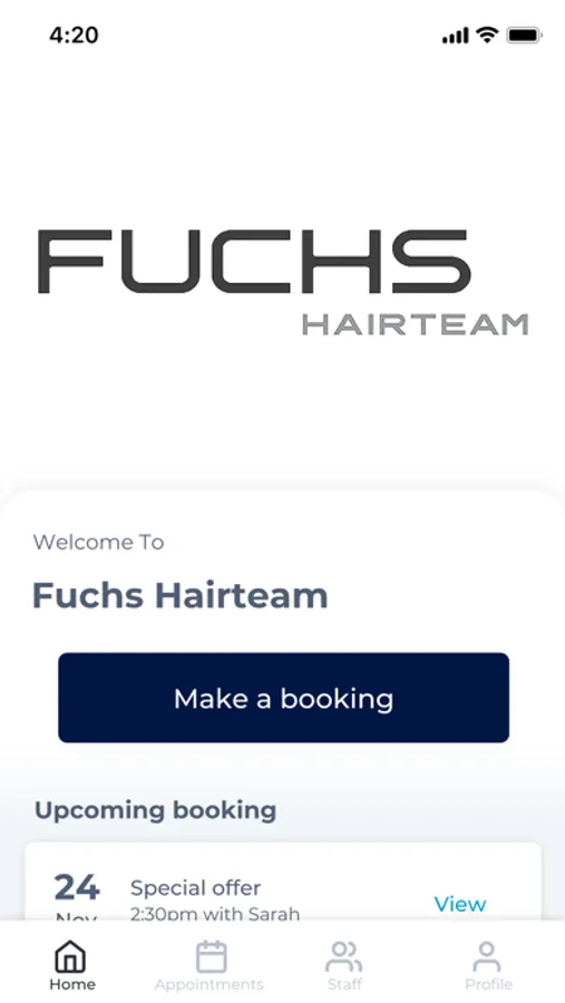 The Fuchs Hairteam app makes booking your appointments and managing your loyalty points even easier. You're just a few taps away from feeling good and looking great!