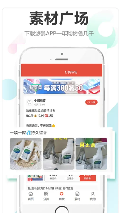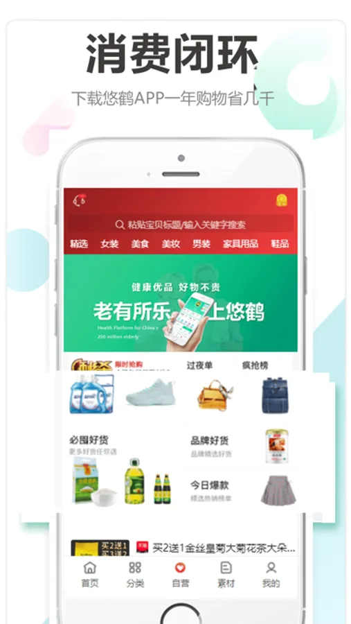 悠鹤APP与淘宝,天猫,京东,拼多多,唯品会,飞猪,美团,饿了么,苏宁等大型系统建立深度合作,通过系统先无缝连接,共同打造集“衣食住行,健康于一体的超级生活入口,海量无门槛各优惠券,省钱可省高至90%。实现购物省钱,满足网购爱好者对品质好货与高性价比的追求,并同时享受购物权益保障。