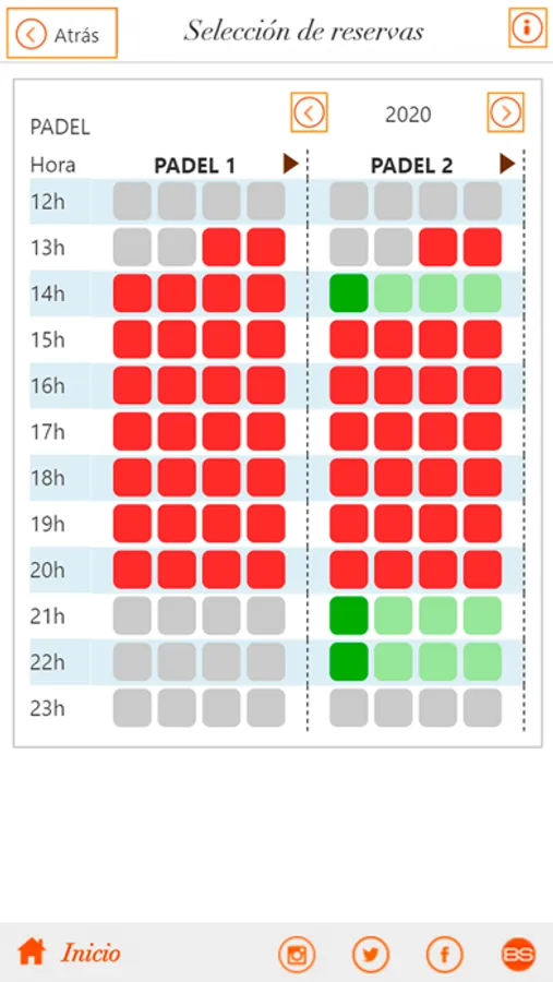 Pots consultar i reservar pistes dels diferents esports a les hores disponibles.