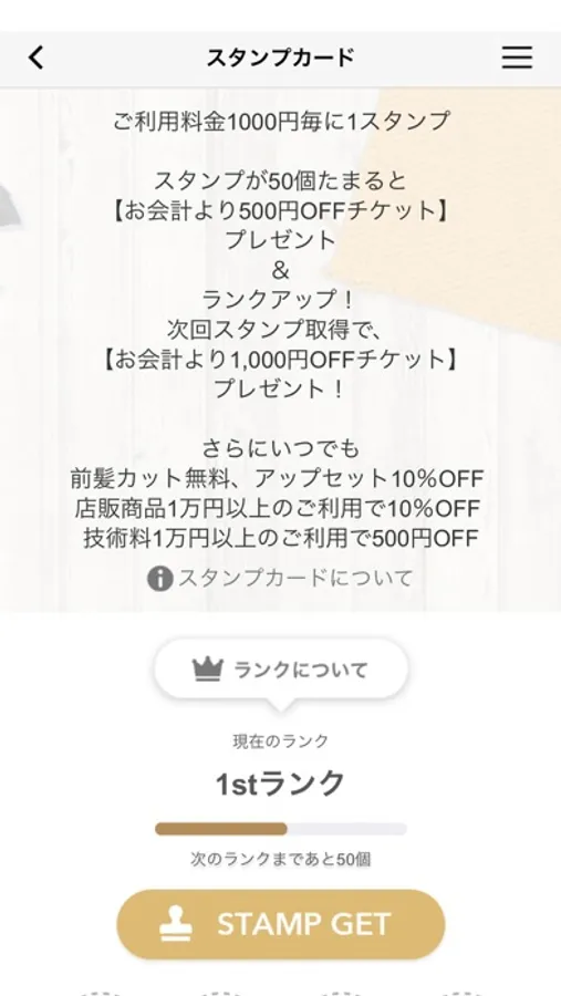 ・ご来店ごとにたまるスタンプカード。