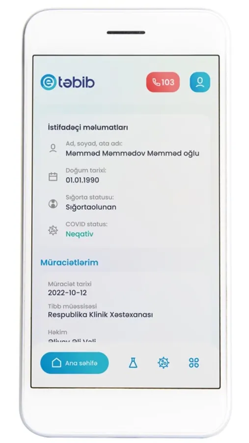 COVID-19 ilə bağlı məlumatlardan əlavə digər tibbi və icbari tibbi sığorta haqqında şəxsi məlumatlarla onlayn qaydada tanış olmaq üçün yeni versiyada “e-Tabib” mobil tətbiqini yüklə!