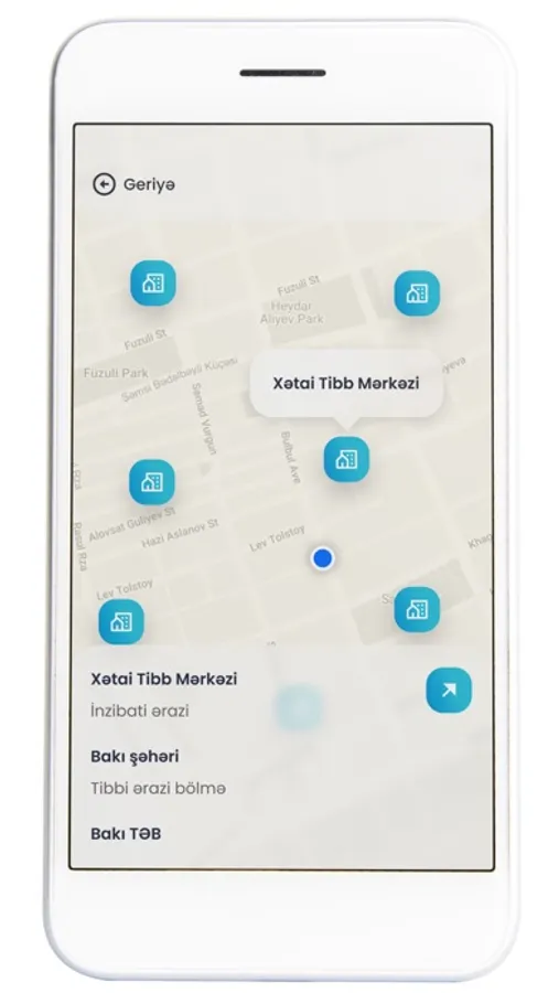 - Tibb müəssisələrinin xəritə üzərində koordinatları;