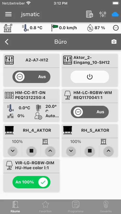 Mit jsmatic lässt sich das Homematic System spielend leicht steuern und konfigurieren. Mit den Tür- und Fensterkontakten, Bewegungsmeldern, Präsensmeldern, etc. haben Sie jede Veränderung in Ihrem Smart Home im Blick. Der Status in der App ist immer aktuell. Sie können eigene Favoriten anlegen, um schnell Ihre wichtigen Komponenten zu steuern.